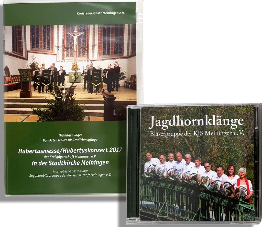 Zu unserem 50-jährigen Jubiläum im Jahr 2017 haben wir eine CD mit konzertanter Jagdmusik und eine DVD vom Hubertusgottesdienst mit anschließendem Konzert in der Meininger Stadtkirche aufgenommen.